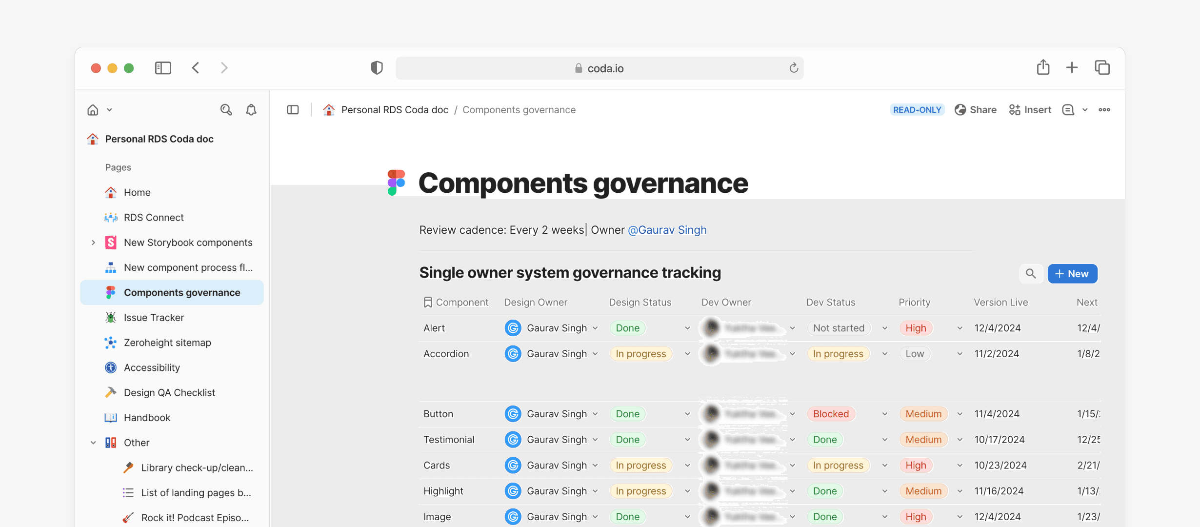 We defined clear ownership, review standards, and update rituals to keep design and the development aligned.